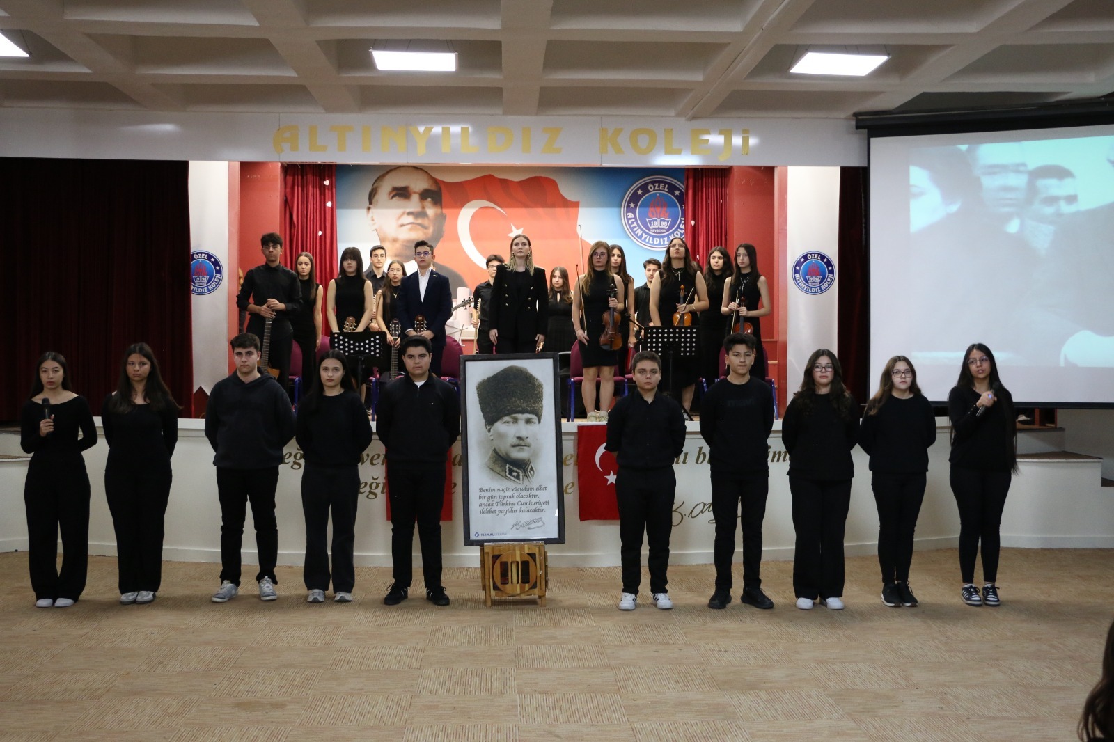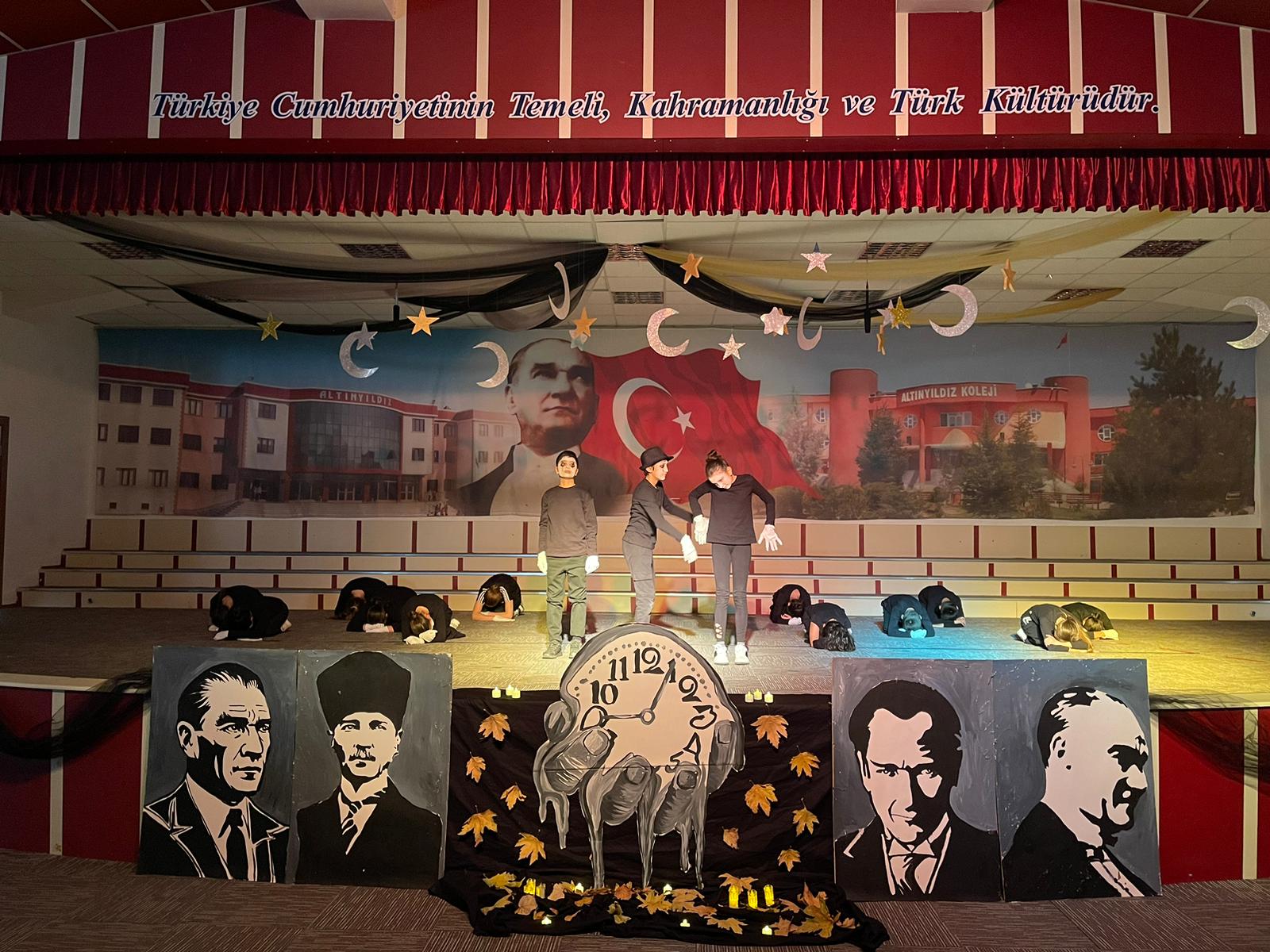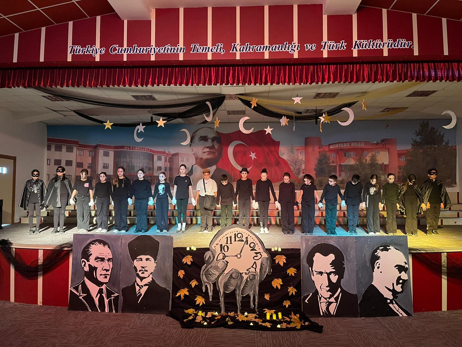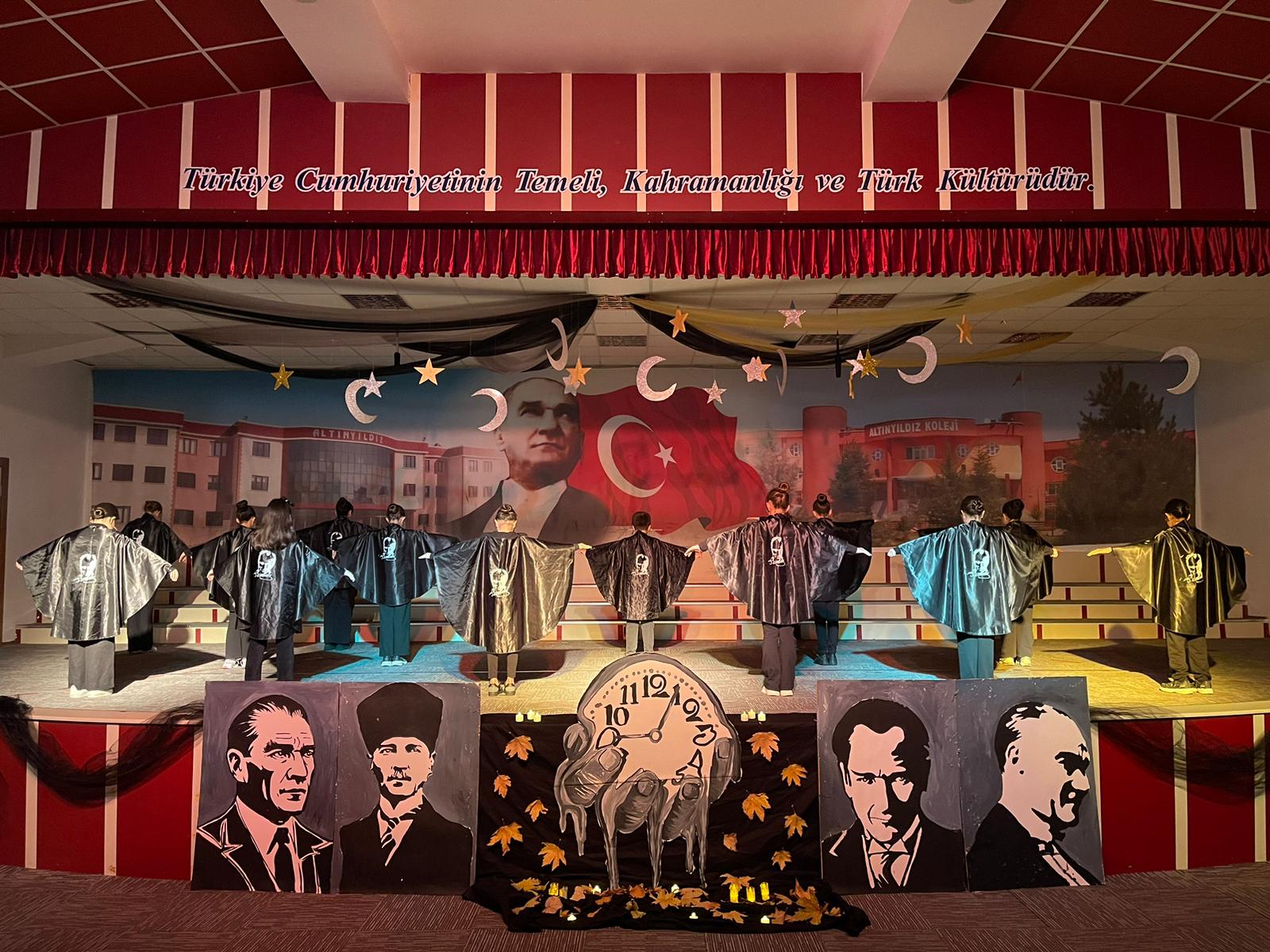Altınyıldız Eğitim Kurumlarından yapılan açıklamada “Türkiye Cumhuriyeti’nin mimarı, büyük önder Gazi Mustafa Kemal ATATÜRK’ü tüm okullarımızda anlamlı törenlerle andık. Hafta boyunca okullarımızda Atatürk resimleri sergisi açıldı, Atatürk’ün sevdiği şarkılar çalınarak okul lobilerinde “10 Kasım ” temalı görseller oluşturuldu. Programların hazırlanmasında emeği geçen okul yöneticilerimize, öğretmenlerimize ve öğrencilerimize; katılım sağlayan velilerimize teşekkür ediyoruz” denildi.