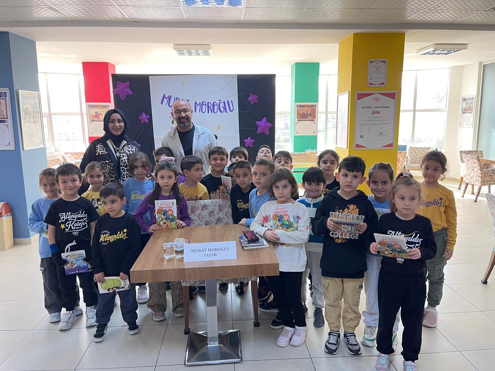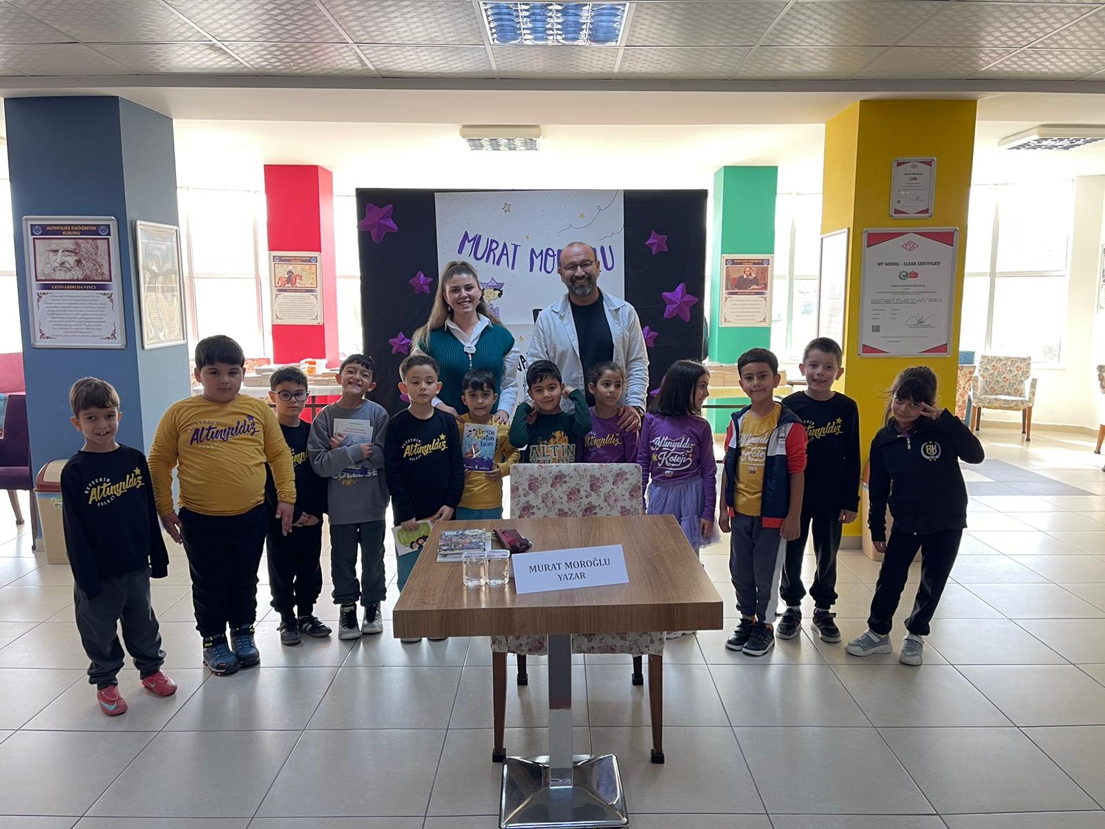 Altınyıldız İlköğretim Kurumunda bu yıl büyük bir heyecanla gerçekleştirilen Kitap Şenliği yazar buluşmalarıyla devam ediyor. Şenliğin bugünkü konuğu, sevilen çocuk kitapları yazarı Murat Moroğlu oldu.