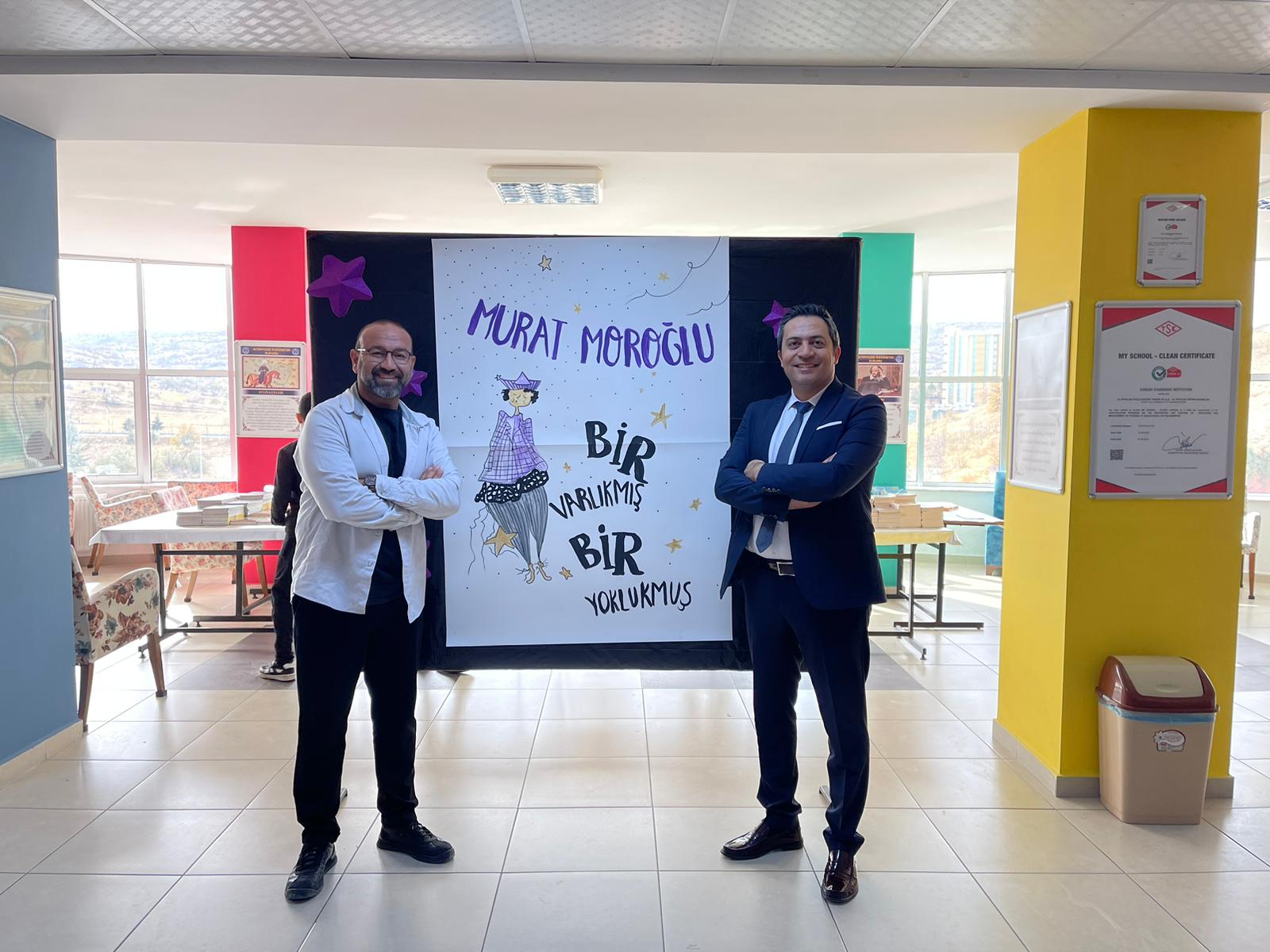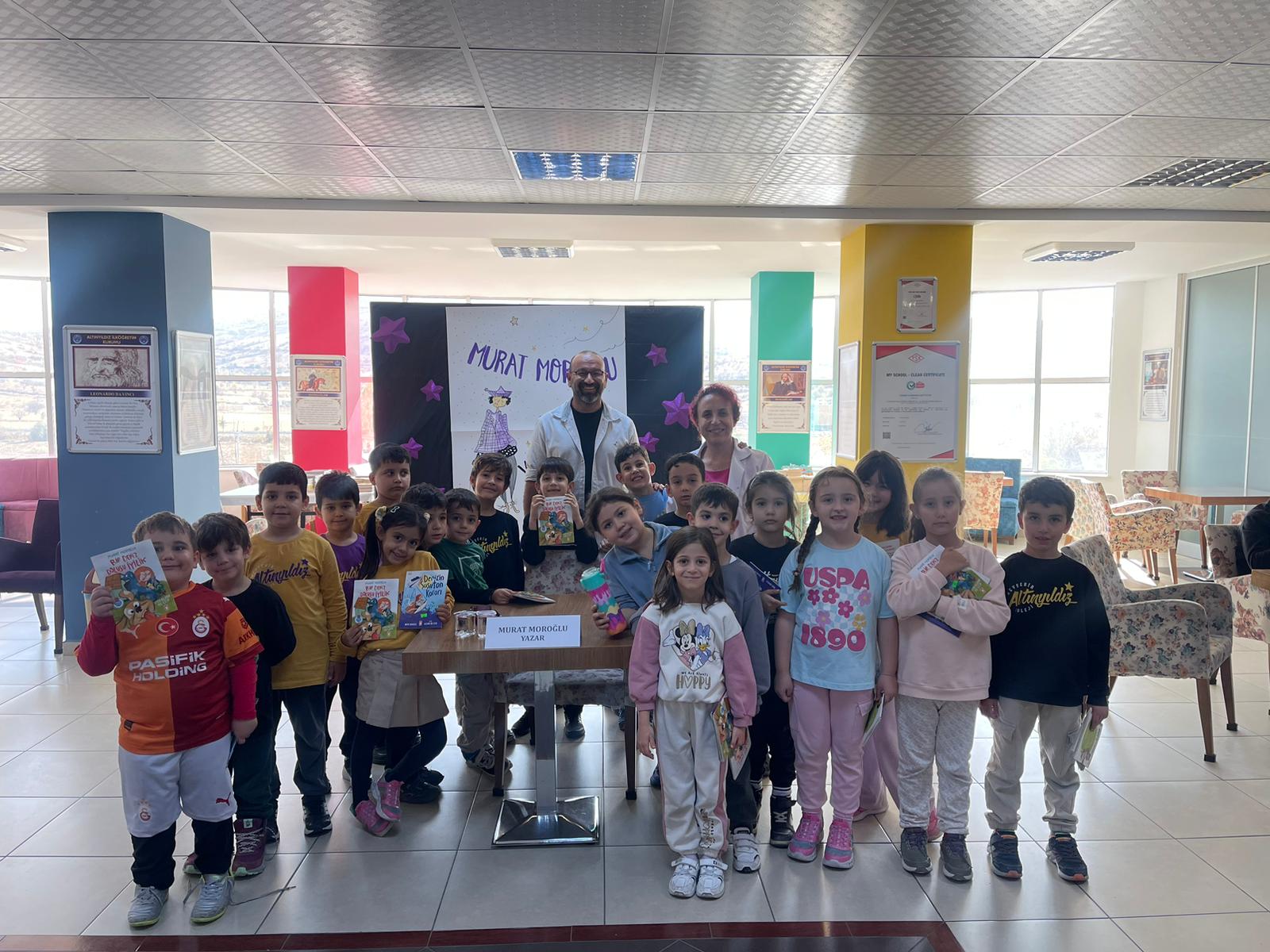 Öğrencilerimizle keyifli bir söyleşi gerçekleştiren Murat Moroğlu, yazarlık serüveninden, kitaplarının ilham kaynaklarından ve çocuklara hitap eden eserlerinin nasıl ortaya çıktığından bahsetti. Samimi ve eğlenceli anlatımıyla öğrencilerin ilgisini çeken yazar, okumanın ve yazmanın hayatımızdaki önemine de dikkat çekti.