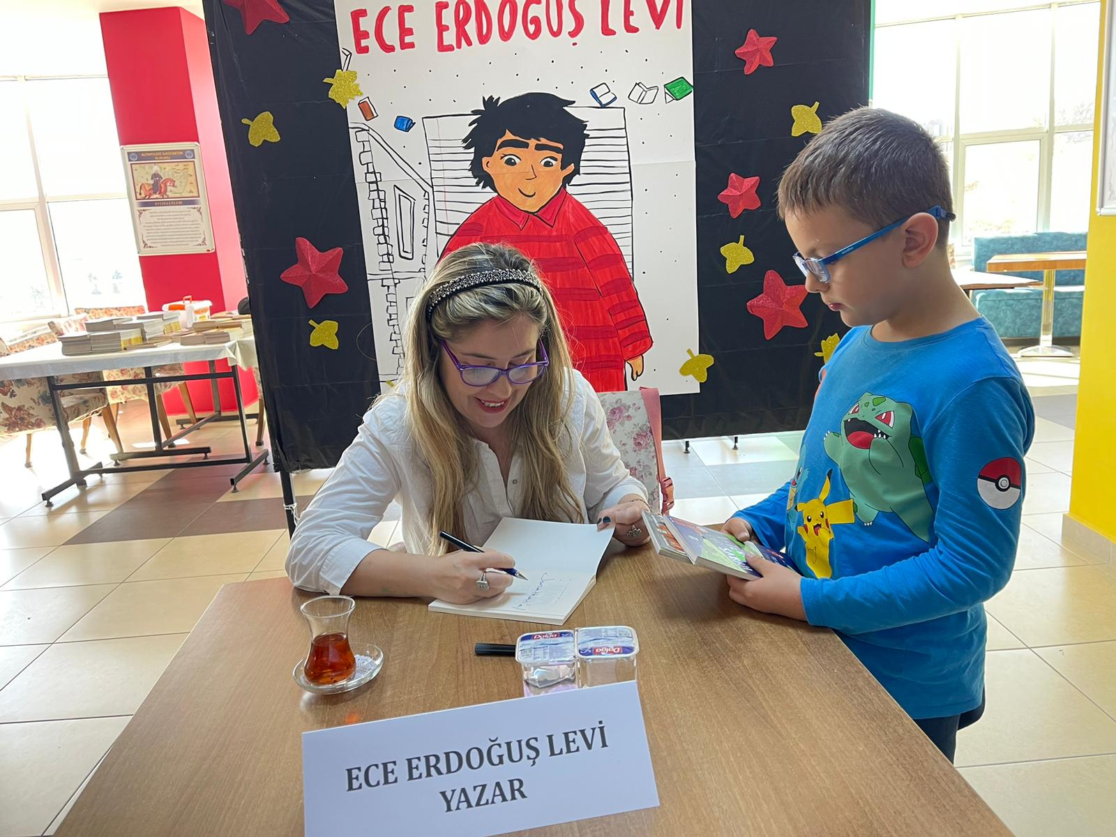 Altınyıldız İlköğretim Kurumunda bu yıl büyük bir heyecanla gerçekleştirilen Kitap Şenliği, yazar buluşmalarıyla devam ediyor. Şenliğin üçüncü konuğu, sevilen yazar Ece Erdoğuş Levi oldu.