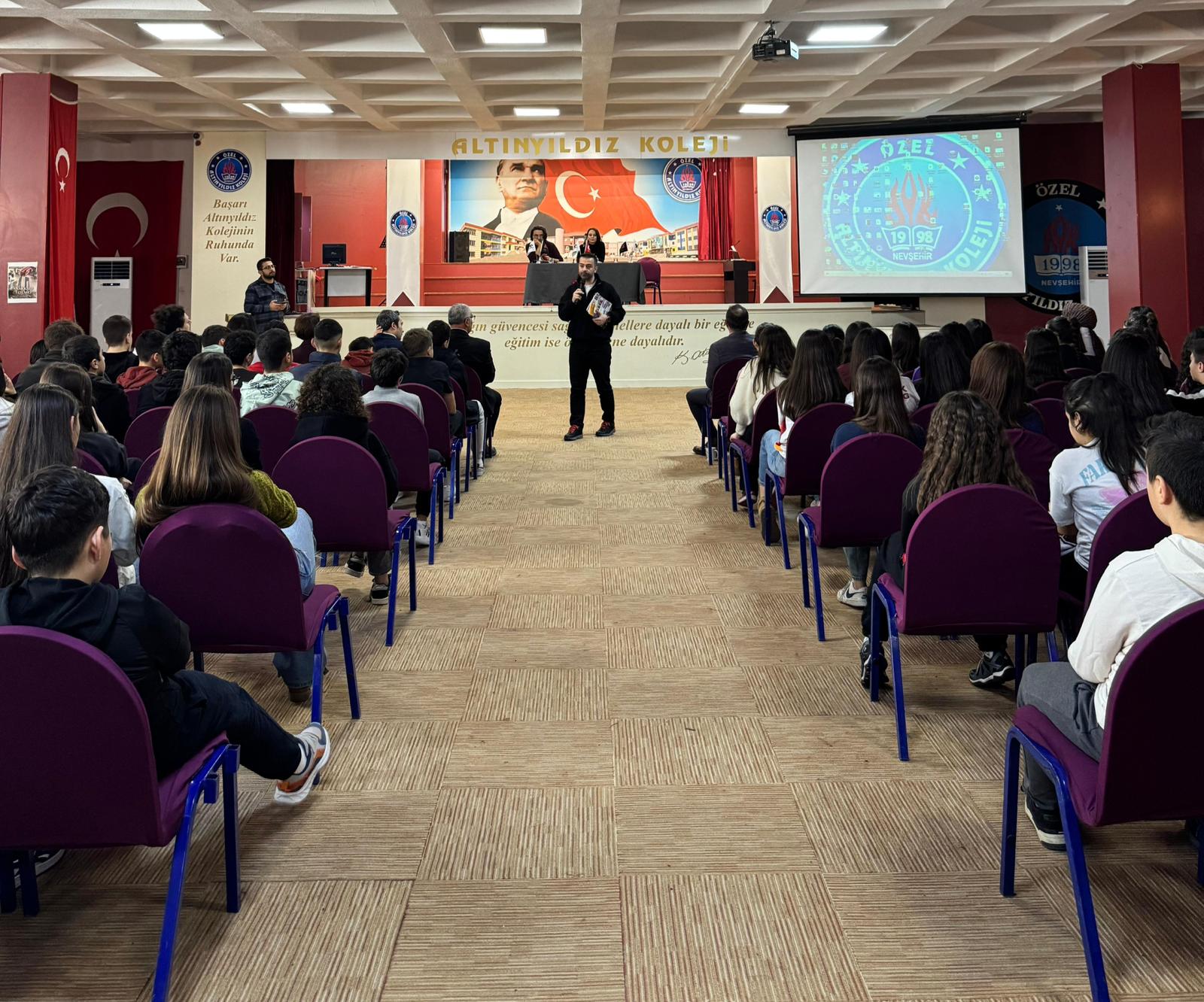 Seminerde Yargı Ders Arkadaşım ekibinden alanında uzman üç değerli isim öğrencilerimizle buluştu. Matematik Yazarı Serkan Kebenç, Eğitim Koçu Osman Sarı ve Fen Bilimleri Yazarı Merve Er Aslan programa konuşmacı olarak katıldı. Konuklarımız öğrencilerimize sınav sürecini doğru yönetmenin önemini anlattı. Doğru çalışma teknikleri ve planlı ders programı oluşturma konusunda önemli bilgiler paylaşıldı.