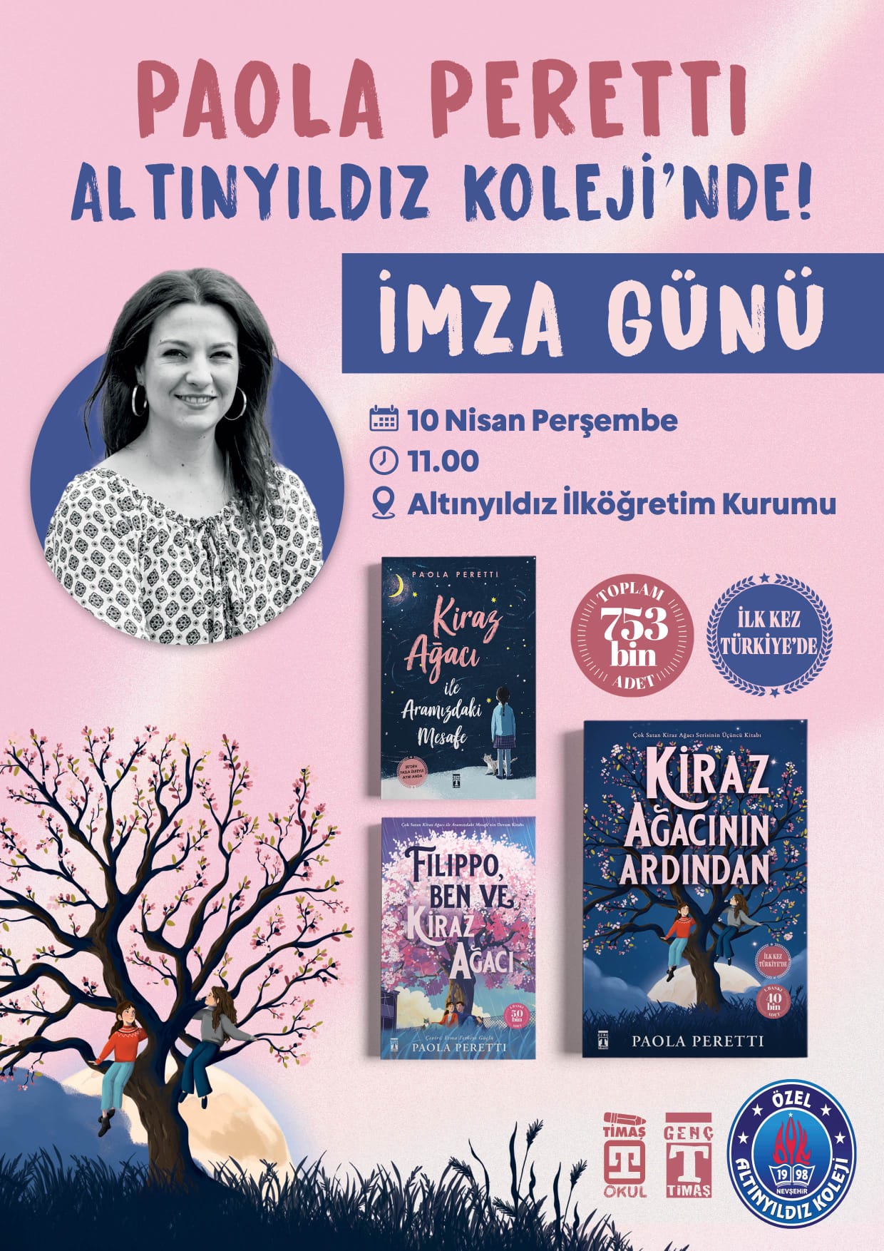 Dünyaca ünlü İtalyan yazar Paola Peretti, 10 Nisan Perşembe günü Altınyıldız İlköğretim Kurumu öğrencileriyle bir araya gelecek. Sadece Altınyıldız İlköğretim Kurumu için İtalya’dan gelen Peretti, öğrencilerle özel bir söyleşi gerçekleştirecek ve etkinlik sonunda kitaplarını imzalayacak.