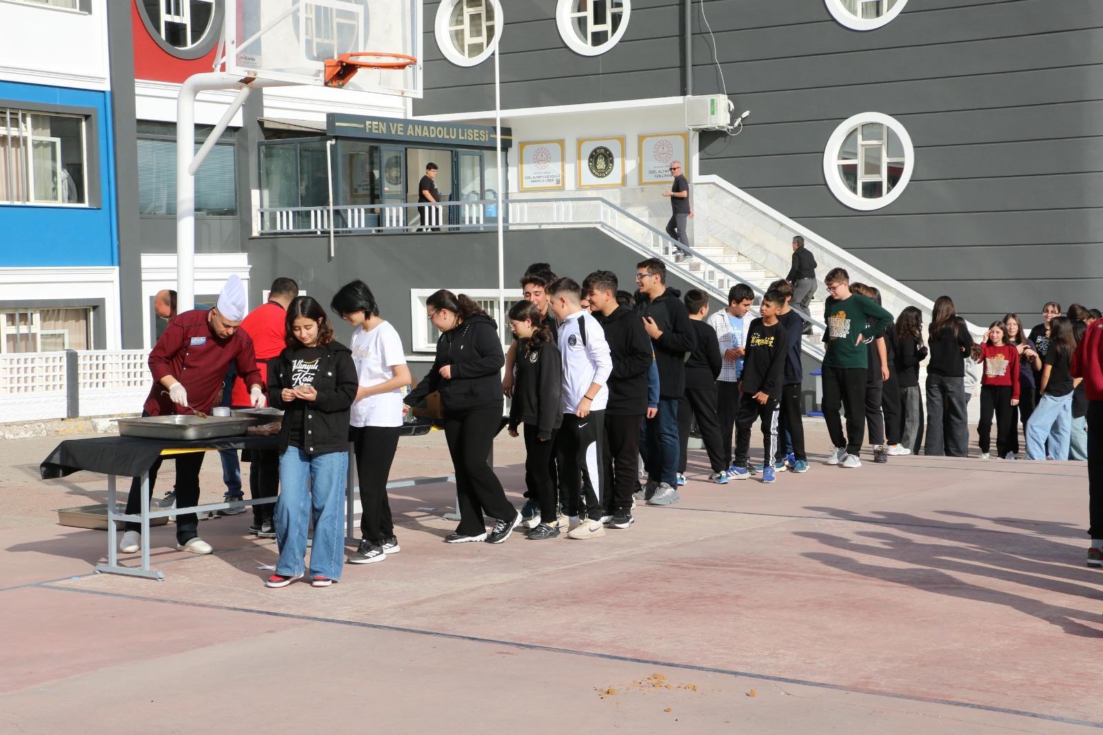 Nevşehir’in en kaliteli özel okulu, çeyrek asırlık eğitim çınarı Altınyıldız Eğitim Kurumları, öğrenci buluşmalarına ev sahipliği yapmaya devam ediyor. Öğrencilerin yoğun ders temposu içerisinde moral ve motivasyonlarının artırılması amacıyla Altınyıldız Koleji Kreş ve Anaokulu, Altınyıldız Koleji İlköğretim Kurumu, Altınyıldız Koleji Fen ve Anadolu Lisesinde düzenlenen etkinlikte, öğrencilere tatlı ikramı yapıldı. İkram sırasında öğrenciler keyifli anlar yaşarken, öğretmenler de bu özel etkinlikte onlara eşlik etti. Buluşmada ikram edilen tatlı, öğrencilerin büyük beğenisini topladı.