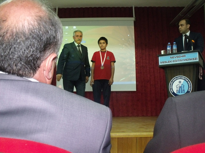 24.09.2014 tarihinde Çıraklık ve Mesleki Eğitim Merkezinde Vali Yardımcımız, İl Ticaret Müdürümüz ile Esnaf ve Ticaret Odası Başkanımızın katılımıyla düzenlenen madalya töreninde öğrencilerimizden il birincisi Bekir Melih Fidan’a İl Ticaret Müdürü Sayın Tuncer Başbozkurt tarafından il üçüncüsü Yunus Emre Aşıcı’ya Çıraklık ve Mesleki Eğitim Merkezi Müdürü Sayın Mesut Çetin tarafından madalyaları verildi.