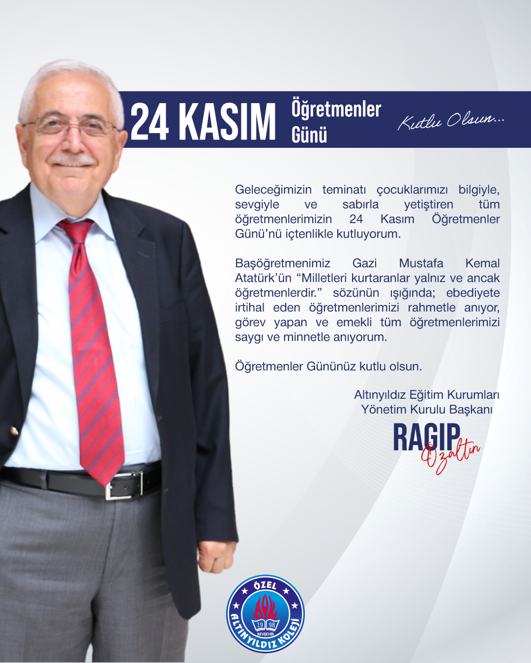 YÖNETİM KURULU BAŞKANI ÖZALTIN’DAN 24 KASIM ÖĞRETMENLER GÜNÜ MESAJI